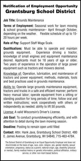 Grounds Maintenance School District Of Grantsburg Grantsburg Wi