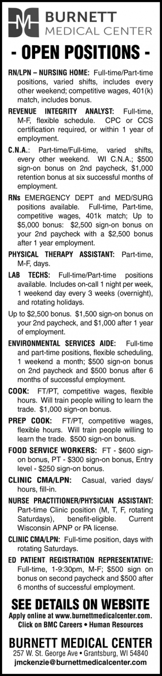 Grantsburg Wi Hospital Jobs Careers Burnett Medical Center
